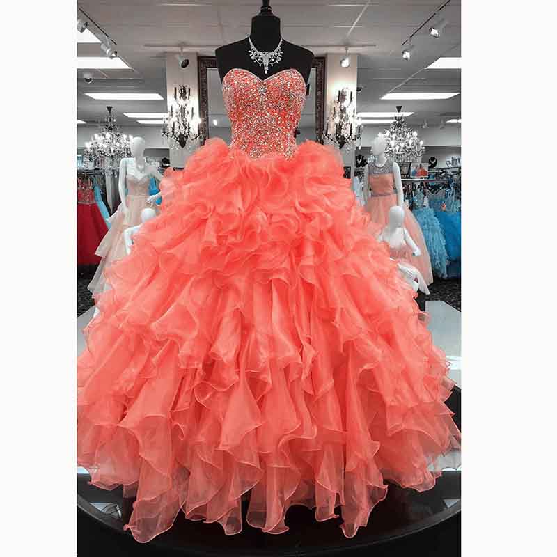 Source : www.thepromshop.netCoral /Pink Princess Ball Gown Sweetheart Diamond Crystal Sweet 16